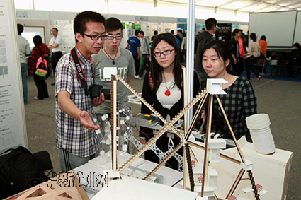 清华新闻网4月28日电(学生记者 邓 耿)4月27日上午,清华大学第32届“挑战杯”学生课外学术科技作品展览开幕式暨颁奖典礼在游泳馆南广场举行。校领导陈吉宁、谢维和、韩景阳、袁驷、史宗恺、邓卫、邱勇、姜胜耀、吉俊民,老领导方惠坚、王大中、贺美英、顾秉林、王明旨、张慕葏、黄圣伦、王凤生、余寿文、胡显章、朱爱菁、张再兴、叶宏开、郑燕康、孙道祥等参观了展览,并为获奖院系和个人颁奖。副校长袁驷宣读获奖名单。