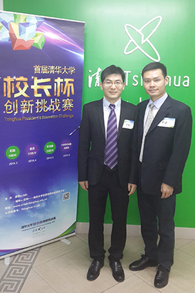 在2014清华“校长杯”决赛现场,自动化系博士生谢峰和尚家兴身着深色的西装,稳步走上讲台。
