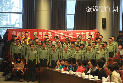 计算机系国防生赵华凯的亮相颇具气势,他的亲友团——国防生班的同学们都身着军装前来为他助威,“华凯华凯、尽显风采、携笔从戎、立志报国”的整齐嘹亮的助威声响彻主楼后厅,也赢得了一片掌声。从高考分数低于清华统招录取分数线,到成为计算机系第一个成绩排名进入年级前5名的国防生和第一个获得中国计算机学会全国百名优秀大学生奖的国防生,赵华凯不仅证明了国防班里也能出“大牛”,更为自己的强军强国梦打下了坚实的基础。