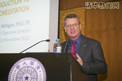 清华新闻网11月20日电(记者 李 含)11月18日,美国工程技术认证委员会(Accreditation Board for Engineering and Technology,ABET)执行主任迈克尔•密里根(Michael K.J. Milligan)博士访问清华大学并在清华主楼作了题为“ABET工程教育认证”的特邀报告。教育部高等教育教学评估中心主任、中国工程教育认证协会副理事长、秘书长吴岩,清华大学副校长袁驷,清华大学原副校长、中国工程认证协会副理事长余寿文出席报告会。作为学校第24次教育工作讨论会的主要学术演讲活动之一,该报告吸引了学校工程教育相关领域负责人、教师的广泛关注。