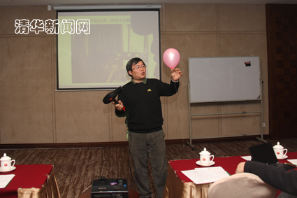 范钦珊在示范讲授时还原了他平时的上课情景,并根据自己多年的教学经验与思考对如何提高教学质量、加强课堂互动,从加深教学理念认识、提高学生学术志趣、加强师德建设等方面提出了自己的见解。高云峰在现场展示了自己动手制作的指南车教学道具、气球空中平行运动小实验、课堂生师互动视频回放等,分享了自己的教学体会,表示在教学中要重视传播知识与探索研究的结合,提高学生动手实践能力,培养学生学术志趣。