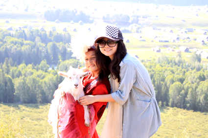 图为胡金铭(右)在新疆支教期间与当地哈萨克族女孩在一起。