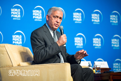 清华新闻网7月2日电(学生记者 方文)巴基斯坦前总理阿齐兹在世界和平论坛上表示, 当今世界安全问题的挑战是复杂和变化多端的。由于全球化以及新的权力和实力中心的出现,世界上国家越来越相互依赖,经济和市场是一荣俱荣一损俱损的,一个国家的衰败和繁荣有可能影响很多国家,在这种日益的相互依存的环境中,就要求各国更好的理解集体的责任,并需要采取共同的行动来维护全球的安全。共同的行动和集体的解决方案是保证全球稳定的关键。
