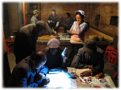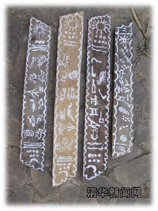 凡是对他留有略微了解的人都知道,拨开笼罩在其文化上的迷雾并非易事。由于历史的久远阻隔,其源流脉络早已扑朔迷离。曾经用来抵御外敌的古堡早已毁于战火,但却云遮雾障、悬疑重重;被誉为“彝汉融合结晶”的大碑林经历岁月的洗礼依然令人叹为观止,但却隐射出众多历史之谜;演绎着无数罗曼史的“青春棚”构成了双系对偶婚姻制的缩影,令人心荡神驰。而在众多谜团之中,最为人们所忽视的是他留人的语言、铎系所书的象形符号及其对应的唱经。可是,由于他留人只有语言,没有成熟的文字,因此,其文化传承遇到了不小的阻力。为了挽救他留文化,以及出于对语言文字学的喜爱,清华大学人文学院大二的学生张雪梅主动加入到“他留文化及他留图符”研究团队,并作为队长于2011年寒假在指导老师的带领下与来自软件学院的大三师兄李居政、经管学院大三女生梁静远一起走进了云南他留人的生活。