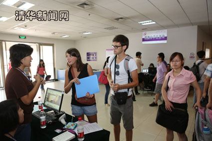 如往年一样,清华大学研究生会专门设立了新生报到咨询服务处,欢迎研究生新生。今年研会同学为新生同学准备的学习生活指南的内容更为丰富,涉及从入学到毕业、从学习到生活的各个方面内容。IC卡套封面上印着创新、厚德载物、环保、微博、责任等研究生生活的关键词。每年都有的新生腕带今年也别具新意地融入奥运元素,五种颜色、印着奥运标志的五环腕带和紫色校色腕带一起,为2012级研究生新生提供了特别的入学纪念。