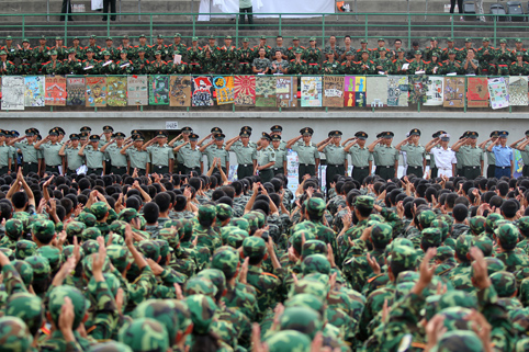 清华新闻网9月10日电(研通社记者 王皓冉 摄)8月20日正式开始的为期3周的军训是清华大学2012级新生大学生涯的起点。让我们从摄影师的角度去回忆这一段难忘的绿色军营情。