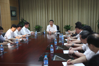 清华新闻网6月21日电(记者 刘蔚如) 6月19日,中共中央政治局常委、国家副主席习近平视察清华大学。在工程物理系,习近平参加了刚刚获得“北京高校2010-2012年创先争优先进基层党组织”称号的安全科学与技术研究所党支部的支部活动。
