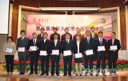 本次讲坛上还对2012年清华大学优秀博士后进行了表彰,王强等十位博士后荣获“2012年清华大学优秀博士后”称号,与会领导为他们颁发了荣誉证书。
