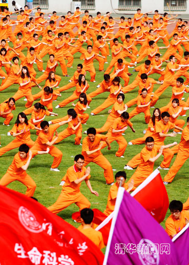 图为共同唱响清华大学校歌。研通社记者 王皓冉 摄
