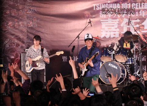 清华大学101年校庆嘉年华上的南无乐队表演。研通社记者 王政显 摄