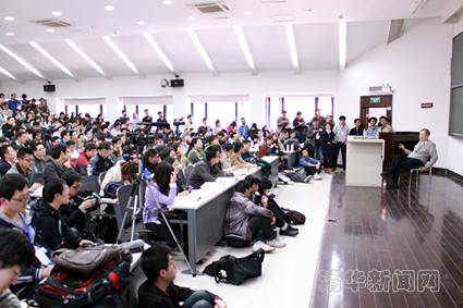 图为学术人生报告现场座无虚席,很多学生站着听完报告。记者 苑 洁 摄