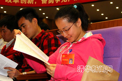 清华新闻网4月11日电 (学生记者 周格格)作为清华大学精仪系本科大四学生,清华大学2011年特等奖学金获得者马冬晗荣幸当选为清华大学第十三次党代会学生党代表。她说,“能够成为学生党代表,这是大家给我的信任和对我之前表现的肯定,我感到非常激动,同时也感到身上担负的责任。”
