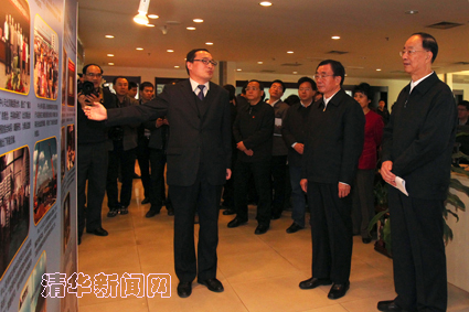 上午9时许,贺国强来到清华大学校史馆,观看了清华大学校史展和百年校庆庆典活动专题展。