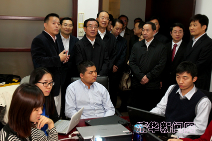 贺国强首先来到国情研究中心主任胡鞍钢教授的办公室,了解他的工作、研究情况。胡鞍钢向贺国强提交了中心师生就十七大以来党中央廉政建设进行的专业化评估报告,以及关于如何与腐败“病毒”进行博弈、开发“杀毒软件”方面的研究成果。贺国强对相关研究的意义给予了肯定。