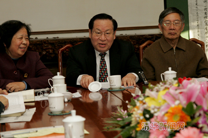 顾秉林校长(中)与老领导方惠坚(右)、贺美英出席座谈会