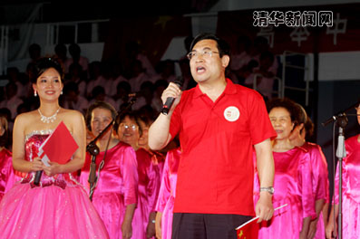 【新闻中心讯 记者 魏磊 通讯员 马鸿春 摄影 郭海军】为庆祝新中国成立六十周年,歌颂伟大祖国,弘扬清华精神,9月24日晚,清华大学“我爱我的祖国”师生同台演唱歌咏晚会在综合体育馆隆重举行,全校50多个单位4100多名师生参加了这次歌咏活动。北京市教育工会主席张青山,清华大学党委书记胡和平,党委常务副书记、副校长陈旭,副校长谢维和,党委副书记、纪委书记、工会主席韩景阳,校务委员会副主任庄丽君,老领导胡显章等出席了晚会并参加演出。