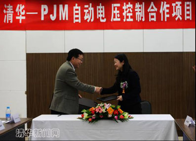 PJM是目前全球最大的区域电网公司,负责美国首都华盛顿和东部13个州的电网安全运行和电力市场服务,总用电占全美的1/6。清华与PJM在自动电压控制(AVC)方面的合作始于2008年初,项目负责人是电机系的孙宏斌教授和张伯明教授。目前,第一期项目“PJM电网自动电压控制系统的研究”(AVC study on the PJM system)已经圆满结题。本次签约的是清华与PJM的第二期合作项目“PJM电网自动电压控制系统的在线实现”(Online Implementation of AVC at PJM Control Center)。合同签订后,我校自主知识产权的AVC系统将在今年年底之前,安装到美国PJM电网控制中心,实现试运行,这将成为美国电网第一个AVC系统,也将成为我国先进电网控制技术输出到美国的首例,具有里程碑意义。