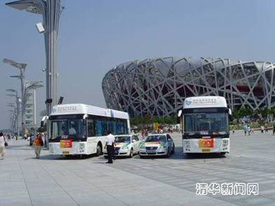 【新闻中心讯】北京时间2008年8月24日清晨7点30分,随着一声枪响,参加北京奥运男子马拉松赛的运动员们从设于天安门东的起跑线出发,开始了全程42.195公里的比赛,而紧随其后缓缓行驶的两辆特殊保障大客车吸引了沿途热情为运动员加油的众多观赛人群的目光。它们行驶平稳、没有噪音、没有尾气……这就是清华大学联合清能华通公司和北汽福田等单位自主开发的新一代全低地板燃料电池城市客车。一周前举行的奥运女子马拉松赛也是由这两辆燃料电池客车和上海大众的燃料电池轿车一起参与比赛的服务工作。