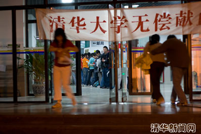 【新闻中心讯 通讯员 陈向 摄影 李尚远】四川汶川大地震牵动着无数清华师生的心,大家踊跃参加无偿献血,支援抗震救灾。仅13日一天,报名献血的师生就超过了1000人,其中653人共献血910单位(每单位200CC)。上午11时开始的“清华大学抗震救灾紧急献血”活动一直持续到5月14日凌晨1点才结束。此外,还有70人登记为后备无偿献血志愿者,250多人登记为奥运应急无偿献血志愿者。深夜12时左右,校党委书记陈希、副书记史宗恺前往看望了参加无偿献血的师生。(编辑 淑霞)
