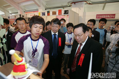 胡和平、陈吉宁、康克军、谢维和、陈旭、韩景阳、史宗恺、袁驷、张再兴等校领导出席了开幕式。第26届清华大学“挑战杯”学生课外学术科技作品竞赛于2007年12月初启动,至2008年4月底三轮评审结束,历时近半年。本次科展既是对本届“挑战杯”竞赛成果的集中展示,也是竞赛选手互相切磋、交流研讨的大好机会,更是为同学、校友与社会多方互动搭建的交流平台。