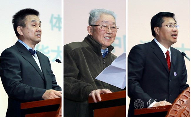 清华大学体育部原主任陈伟强,固体力学家黄克智院士,汽车工程系主任杨殿阁分别代表在校教师发言,讲述了在学习工作中受益于清华体育传统的经历和感悟。