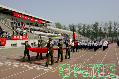 【新闻中心讯 实习记者 程曦 学生记者姜晨怡 摄影 郭海军】4月30日上午,东大操场横幅高挂、彩旗飘扬。在入春以来最灿烂的阳光下,在雄壮嘹亮的军乐声中,清华大学第49届马约翰杯学生田径运动会隆重开幕。