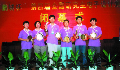由中国电子学会主办的“华为杯”全国高校研究生首届电子设计竞赛于1996年在我校举行,当时仅有13支高等院校的代表队39人参加。到2002年举办“鹏城杯”第四届全国研究生电子设计竞赛时,参赛队伍增加到47支,并有台湾省的新竹清华大学等单位组队参加观摩。目前,全国研究生电子设计竞赛是我国唯一一项研究生专业性竞赛。