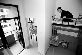 今年,位于大石桥的清华大学紫荆学生公寓一期工程近4万平方米全面竣工。为此,清华的北围墙再次北移。新的本科生公寓四人一间,每个学生上铺下居,上层床铺下布置了电脑桌、衣架、衣柜、杂物柜等家具,高速网络端口直通每个学生桌面,并预留了空调插座和机位。同时,每两个宿舍合用一间布置了长桌的小客厅,便于学生交流讨论,厅内还预留了电视和电话接口。