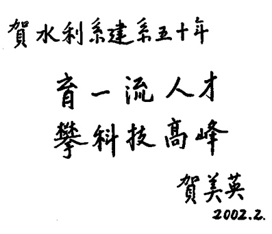 贺美英:水利水电工程系50周年系庆题词