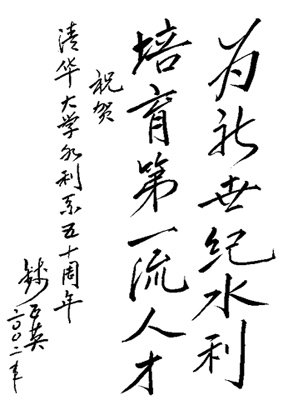 钱正英:水利水电工程系50周年系庆题词
