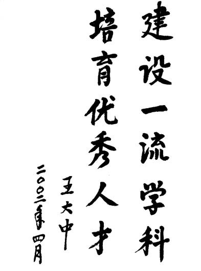 王大中:精密仪器与机械学系、机械工程系七十华诞题词