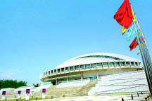 图为新建的大运会篮球赛馆———清华大学综合体育馆。