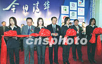 《清华大学建校90周年企业成果展》二十四日在中国历史博物馆隆重举行,中国教育部副部长赵沁平(左四)和清华大学企业集团董事长梁泳霖(左二)、清华大学常务副校长何建坤(右二)为展览剪彩。中新社记者 张勤 摄