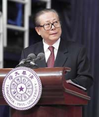 江泽民在清华大学九十华诞庆祝大会上发表讲话。 新华社记者 饶爱民摄 老师们,同学们,同志们,朋友们: 今天,清华大学校园里春光明媚,万物更新,充满着蓬勃朝气。来到你们中间,我仿佛年轻了许多,心情特别高兴。