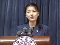 中国清华大学学生代表、学生会主席申跃,四月二十九日在北京庆祝清华大学建校90年大会上发言。
