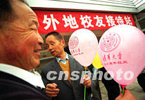已阔别近半个世纪的清华校友二十九日在清华大学九十年校庆日喜相逢。中新社记者 史利 摄