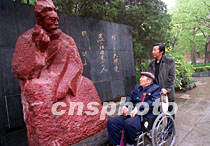 清华老校友在闻一多塑像前