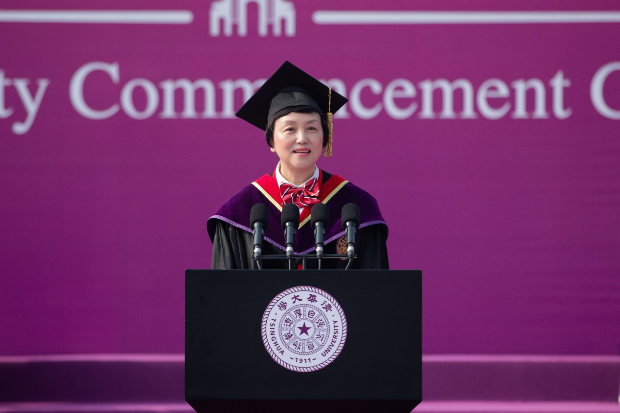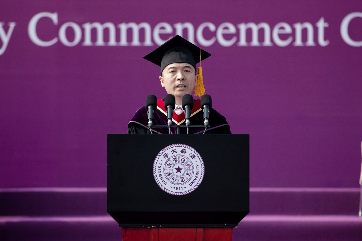 在热烈的掌声中,清华大学校长、校学位评定委员会主席邱勇发表讲话,寄语毕业生“坚守人生底色,绘就壮美画图”。