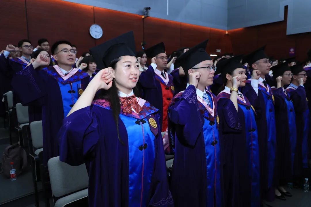 毕业宣誓是清华公管学院毕业典礼的传统,2018级MPA毕业生周献人带领全体毕业生进行了宣誓。现场还播放了毕业生感言视频。视频中,来自于祖国各地、世界各国的毕业生,怀着对学校、学院、对老师同学的感激和不舍,纷纷送上了真挚的寄语。