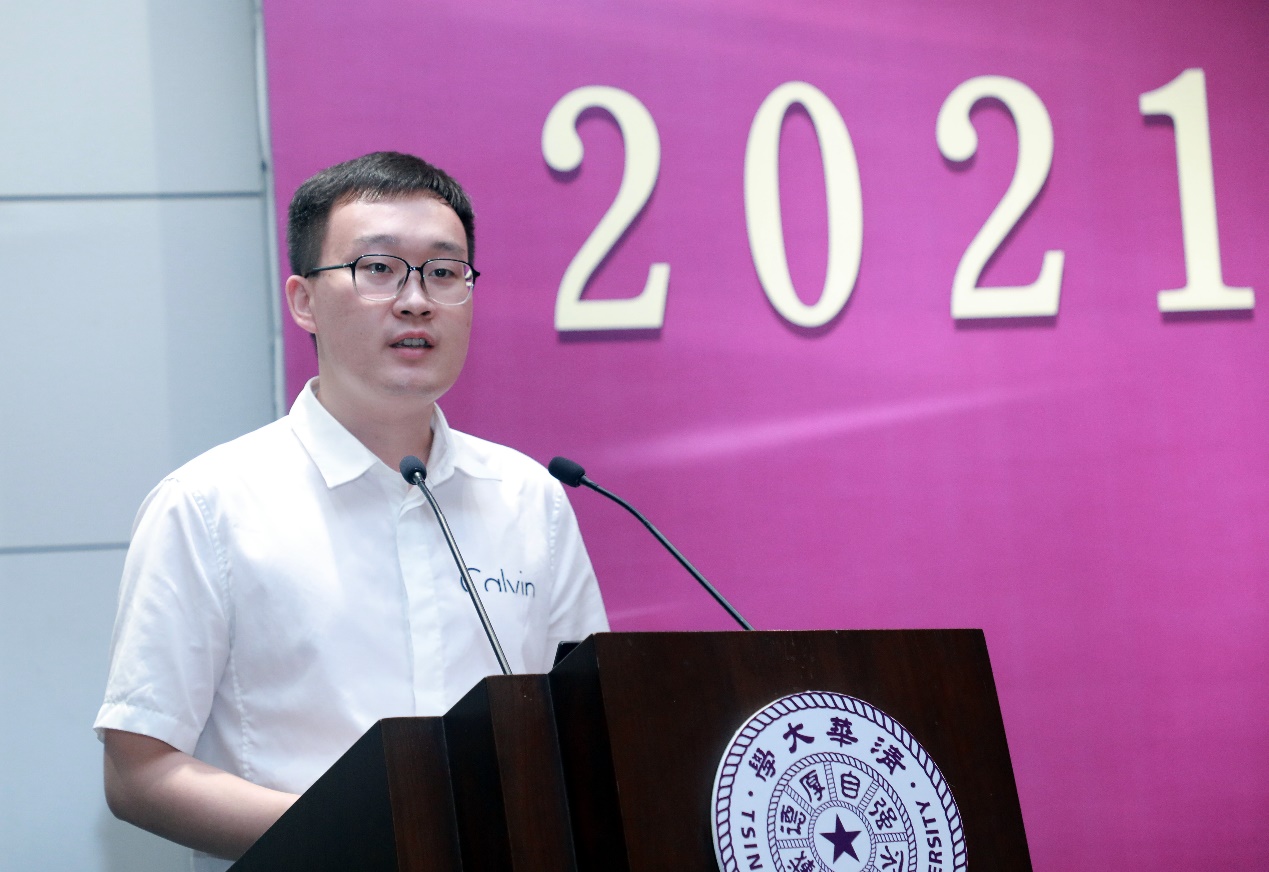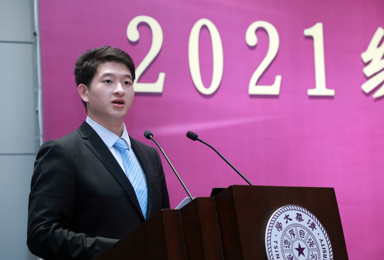 自14班班主任、脑与认知研究所青年教师乔晖作为教师代表发言。他和新生分享了自己在清华园学习、工作和生活的几点体会,生动诠释了自动化的学科内涵,并就适应学科发展和时代趋势的话题同新生分享了自己的看法,鼓励同学们培养家国情怀、抓住时代机遇、坚持自我探寻。最后,他祝福同学们在新的起点扬帆起航,取得更辉煌的成绩。