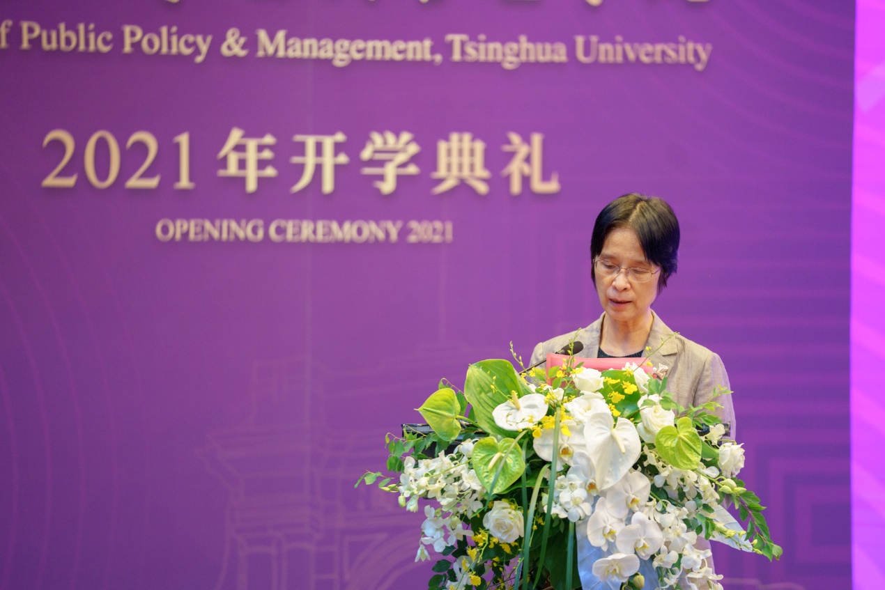 谢矜代表学院向490名研究生新同学表示热烈欢迎。2021级研究生新生来自世界各地、五湖四海,包括博士生46名、学术硕士生57名、MPA项目学生236名;此外,还包括高级公共管理硕士香港项目59名、清华大学-香港城市大学MPA-EMBA项目学生26名、全英文硕士项目留学生66名。