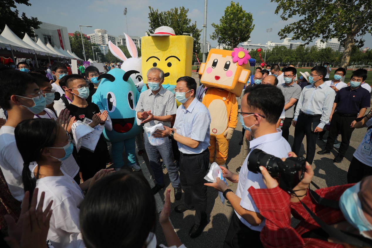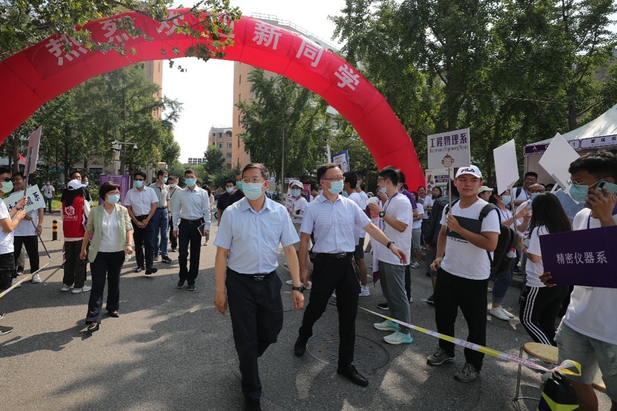 在迎新点,邱勇与能源与动力工程系、车辆与运载学院、土木水利学院、经管学院等院系的老师同学热情交流。邱勇勉励本科新生说:“你们是清华大学110周年校庆后的第一届本科生,期待你们尽快适应新环境,获得新成长,早日成为堪当大任的时代新人。”来自山西的本科新生熊一惠激动地说:“我们一定秉承‘自强不息,厚德载物’的校训,在清华园开始新的生活,立志成为积极向上、阳光自信、服务他人、服务国家的时代新人!”