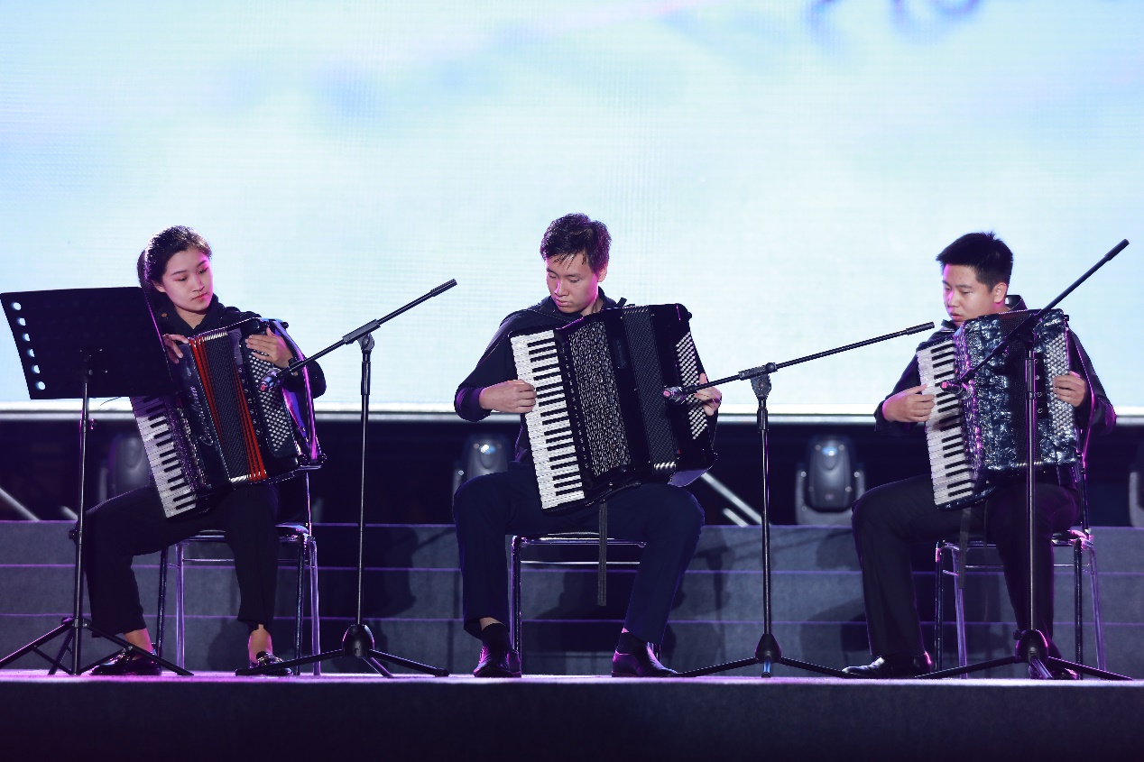 第一篇章“少年游正芳华”,充满了校园生活的青春气息。原创舞蹈《四季》以动作与光影描摹出清华园的四季风光;钢琴、手风琴演奏《远航》鼓励新生在新的人生航线上乘风破浪、扬帆远航;京剧联唱《行云流水》行当丰富,尽显传统艺术之美;国标舞《清青校园》节奏明快,展现青年学子的蓬勃朝气;歌曲《少年游》《序》鼓励新生不惧困难,勇敢追逐梦想。