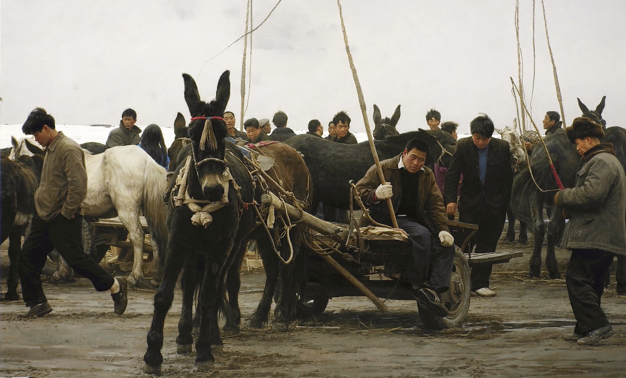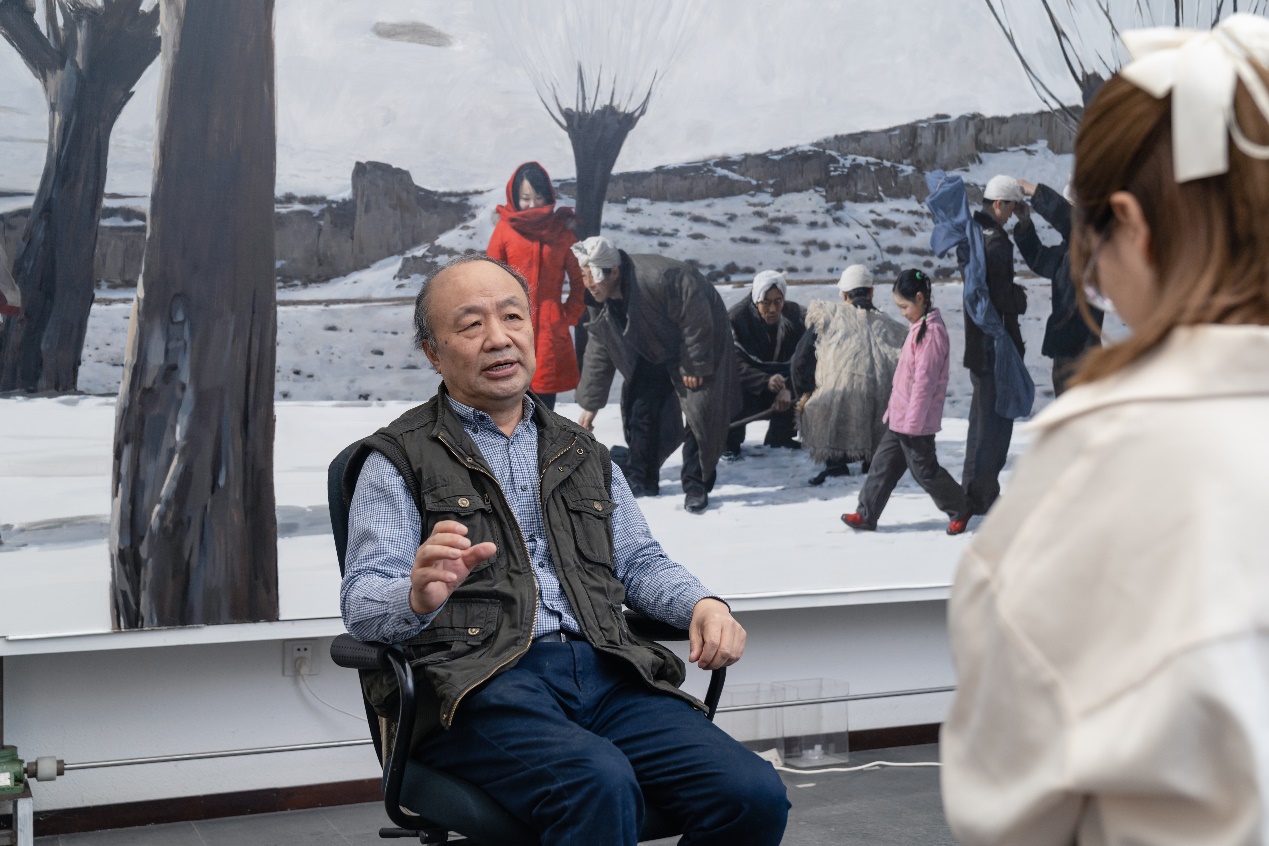 谈及作品创作的时候,他总能清晰地回忆起在数十年前他曾经走过什么地方,见过哪些人,看到哪一幕景象,他们身上的哪一种精神气质让他深深的感动。他将最“下里巴人”的事物变成“阳春白雪”,他怀着冷静的眼光,怀着极热的心肠,关怀着发生在这片土地上的声音和色彩,利用自己的笔触记录下来,让这一代人的形象和声音能够留存在那巨幅的画卷上。