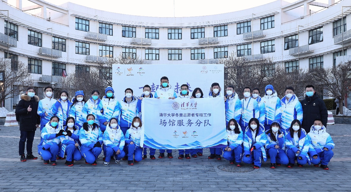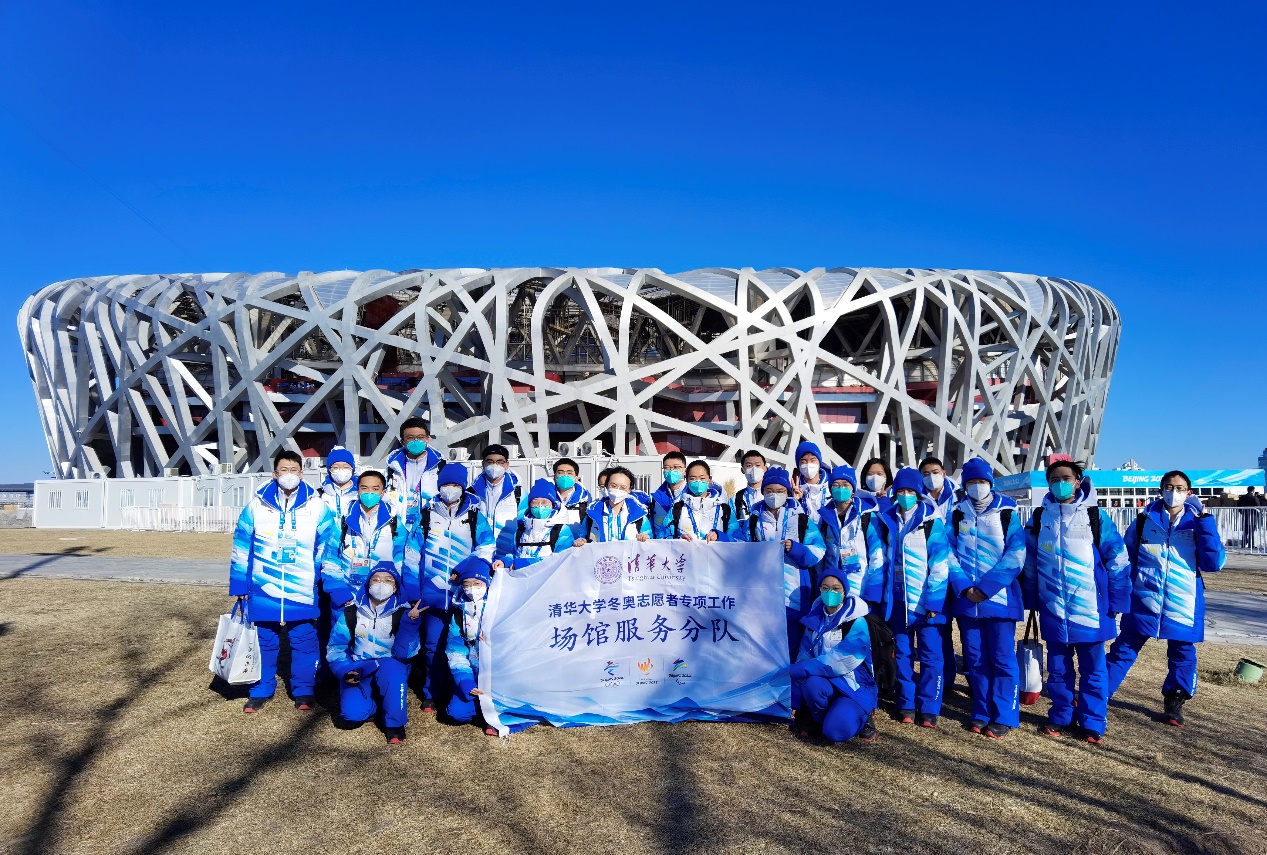 国家体育场赛事服务领域闭环内清华大学志愿者出征合影