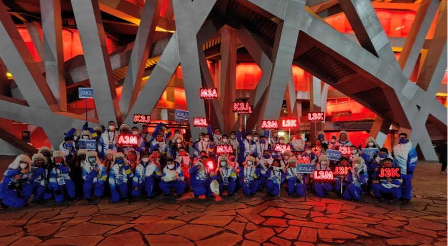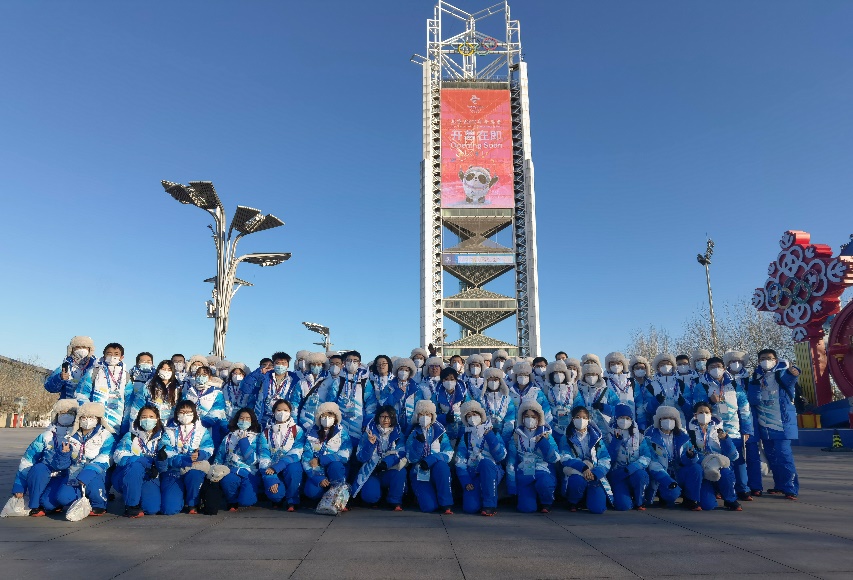 场馆服务组全体志愿者冬奥会开幕式出征前合影
