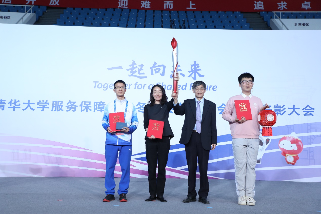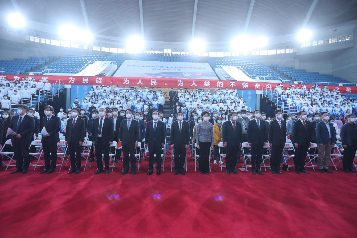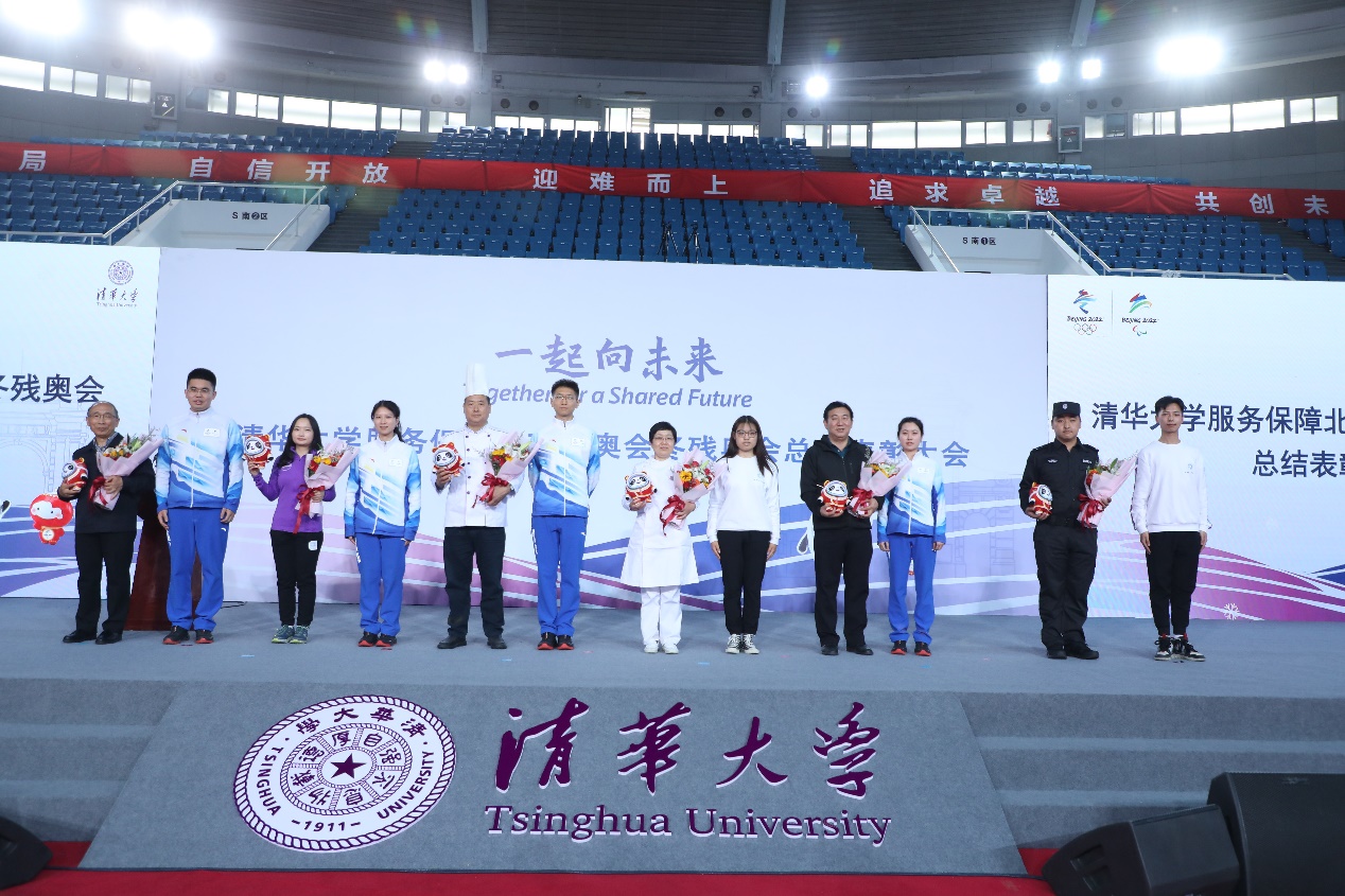 在此次北京冬奥会、冬残奥会中,清华大学共有1300余名师生参与国家体育场等7个场馆22个领域的冬奥志愿服务,是志愿者人数最多、服务内容最广的高校。2022年4月8日北京冬奥会、冬残奥会总结表彰大会隆重举行,中共中央总书记、国家主席、中央军委主席习近平出席大会并发表重要讲话。清华大学冬奥志愿服务团队和清华大学美术学院荣获“北京冬奥会、冬残奥会突出贡献集体”称号。清华大学建筑学院建筑系博士生陈荣钦,清华大学非全日制冬奥赛事管理专业硕士项目2018级赵宏博(国家花样滑冰队教练)、2018级杨磊(北京市体育局青少年体育处四级调研员)、2019级周玉龙(张家口山地转播中心场馆运行秘书长)、2020级齐靓(国家体育馆场馆运行秘书),公管学院2010级MPA校友高坚(北京市卫生健康委党委委员、副主任,主治医师)、公管学院2016级MPA校友王紫儒(北京冬奥组委注册中心规划运行处干事)荣获“北京冬奥会、冬残奥会突出贡献个人”称号。清华大学工化系校友邓小岚被追授“北京冬奥会、冬残奥会突出贡献个人”称号。