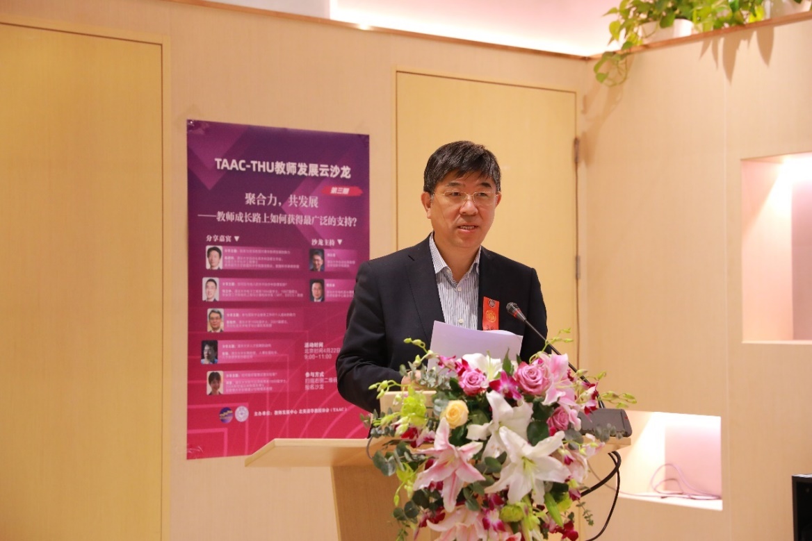 清华大学党委教师工作部部长、人事处处长、人才资源开发办公室主任杨殿阁对沙龙作简要总结。他介绍了清华大学教师队伍建设方面的工作并表示,清华大学深入推进人才强校核心战略,坚持“引进”与“培养”并重,创新人才引进机制,打造人才集聚平台,增强对优质人才的吸引力。与此同时,学校积极遵循创新人才成长规律,成立教师发展中心,加强对青年教师的培养。杨殿阁表示,学校通过打造教学培训项目,开展教学实践和教学咨询,帮助青年教师实现从“站上讲台”到“站稳讲台”;积极备赛全国及北京市高校青年教师教学基本功比赛,点燃青年教师钻研磨练教学基本功的热情。今天的沙龙也是助力青年教师发展的一个重要环节,以“聚合力、共发展”为主题,交流教师成长道路上的支持,对青年教师在学术道路上的成长具有重要意义。