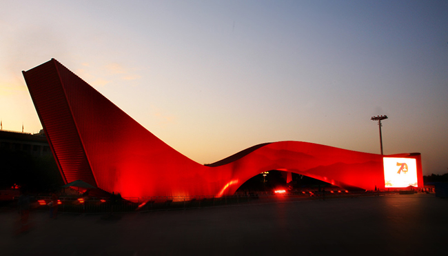 2020年至2021年,美术学院承担了中国共产党历史展览馆的建筑装饰、展览馆标志等设计工作,完成了 “伟业”雕塑、 “长城颂”大型漆壁画、“长江三峡”和“黄河壶口瀑布”岩彩壁画、“小康宝鼎”等艺术创作,用实际行动庆祝建党百年华诞。其中,《长城颂》由100块漆板组成,寓意建党百年,是漆画史上前所未有的超大体量作品,克服了尺幅、工艺、工期等带来的多重“无法想象的困难”,获得“建筑应用创新大奖”。