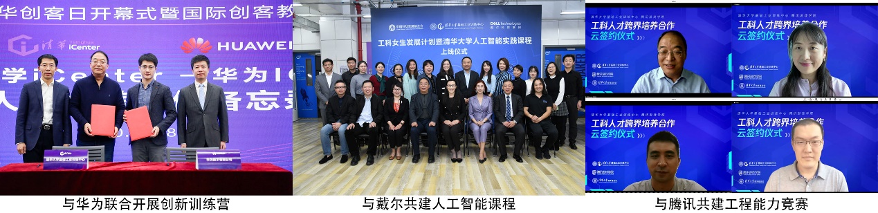 为进一步探索工程实践教学的新理论和新方法,全面建设适应一流人才培养模式的工程实践和创新教学体系,打造国内领先、国际一流的工程实践教育和创新创业教育基地,让更多优质资源充分利用在学生培养上,近年来,训练中心聚合社会相关创新教育资源,深挖内涵,与华为、腾讯、北京精雕、麦肯锡、戴尔、微软、海克斯康等十余家国际知名企业,从“平台共建”与“课程共建”两个维度深度开展校企合作,形成数字化能力发展中心、SMT智能产线、碳立方实验室、华为创新训练营等具有影响力的教学平台及项目,通过定制化的工程训练系列课程,为学生洞见产业发展提供有效途径。